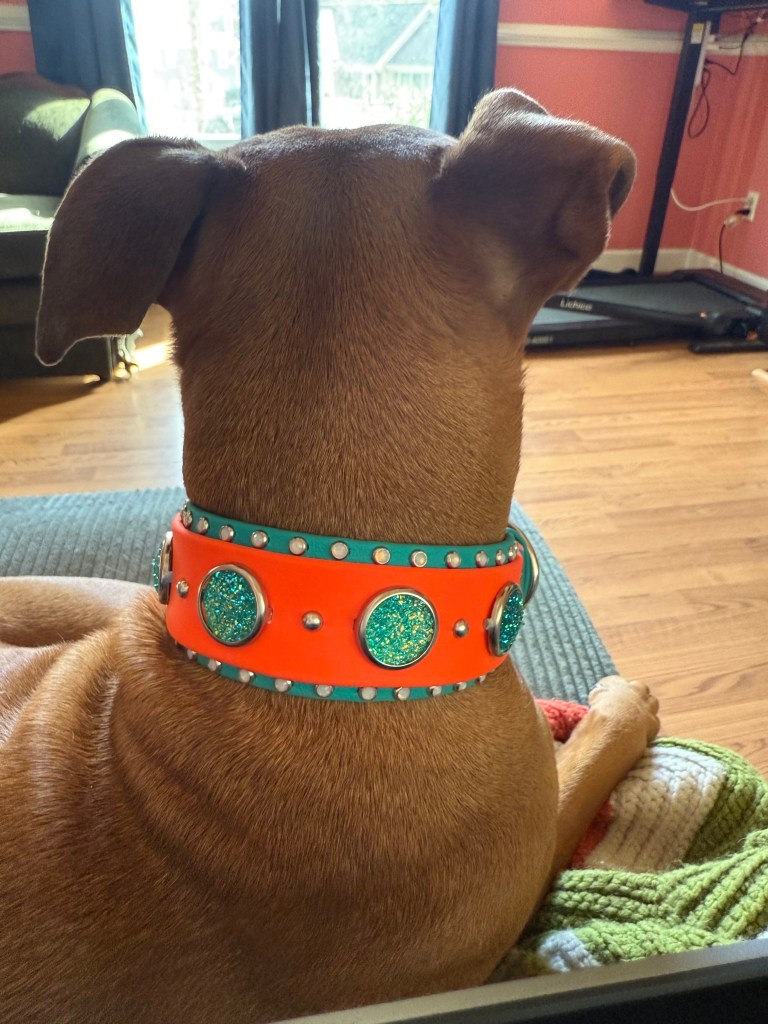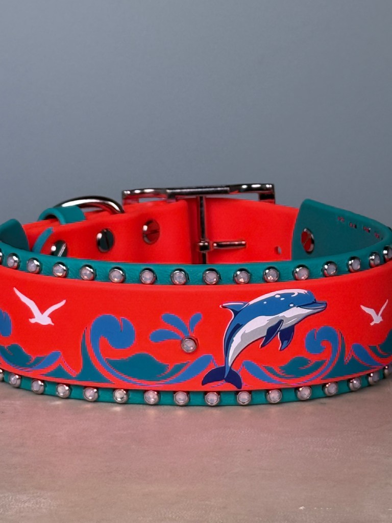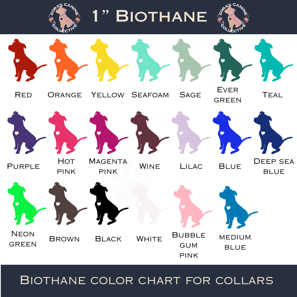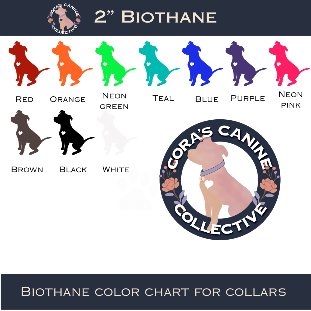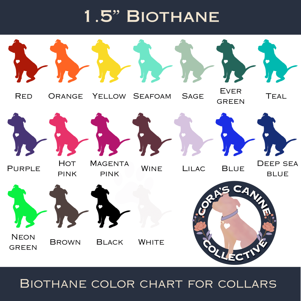 At Cora’s Canine Collective, every collar is designed to celebrate your dog’s personality. We specialize in artistic Biothane®, custom color design, UV-printed artwork, and rhinestone sparkle — all handmade in Raleigh, NC.