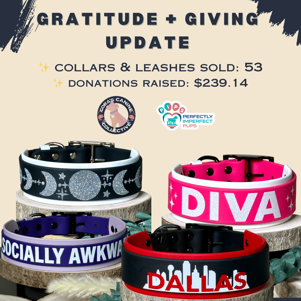 At Cora’s Canine Collective, we believe every dog deserves a chance at love, safety, and a happy life. That’s why 10% of every purchase you make goes directly to rescues and shelters in North Carolina. This commitment is more than just a business decision; it’s a heartfelt mission inspired by the countless dogs in need across our state.